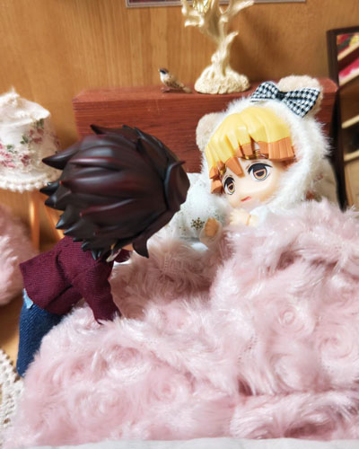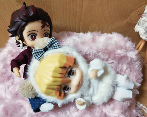 炭治郎「クマになりきってるのか?」 善逸「キュッ!」 |