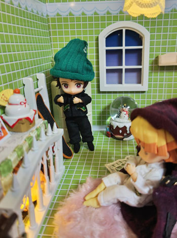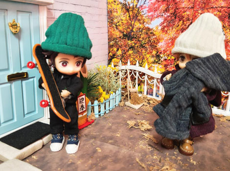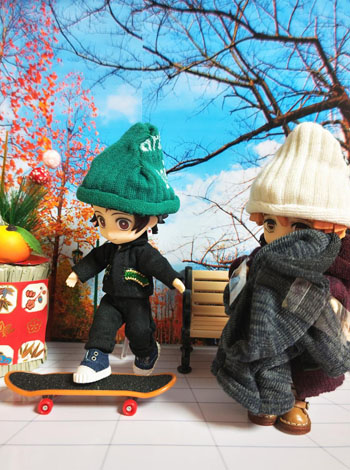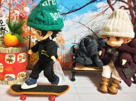 クリスマスに善逸から もらったプレゼントの ローラーボードで遊び に行く炭治郎。 |