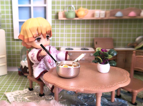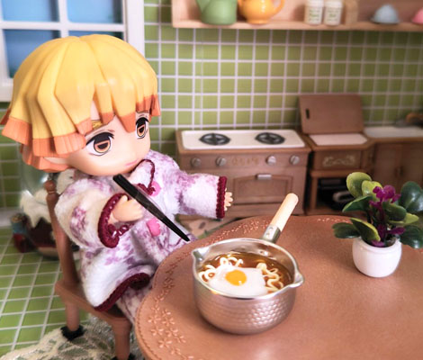 善逸「鍋のままラーメン、 こういうのもたまには 良いよな!!」 |