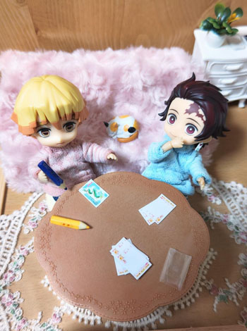 炭治郎「さあ、書こう!!」 善逸「めんどくさ〜」 |