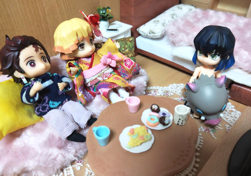 善逸「伊之助、泊って いくんだろ?」 伊之助「ああ、明日帰る!」 |