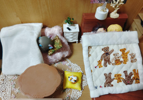 布団で寝てくれないので 今回は始めからソファーで 寝かせることにしました。 |