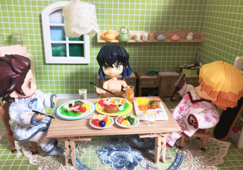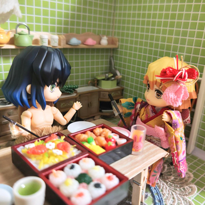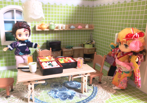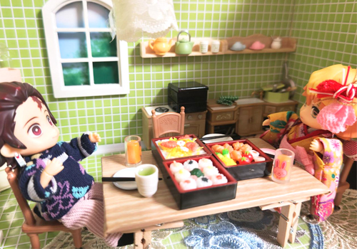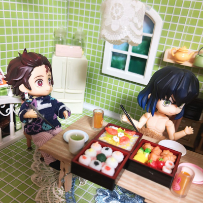 炭治郎「ご馳走を用意したぞ!」 善逸「わあ♪」 |