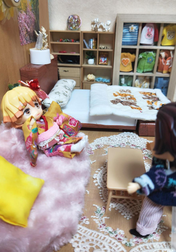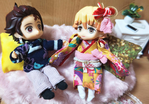 今日はひな祭りなので 正月に着た女の子の 着物を着てます。 善逸「きゃぴっ |